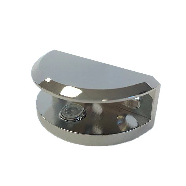 Shelf bracket half moon shape for 8mm – 10mm glass. Polished Chrome