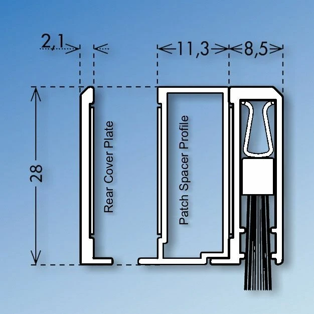 Frameless glass drop down brush seal designed to work alongside patch fitting pivot and lock. Profile spacer is mounted to the glass door between patch fittings with the brush seal then being mounted on top. c/w cover for opposite side of glass. Satin Stainless effect finish